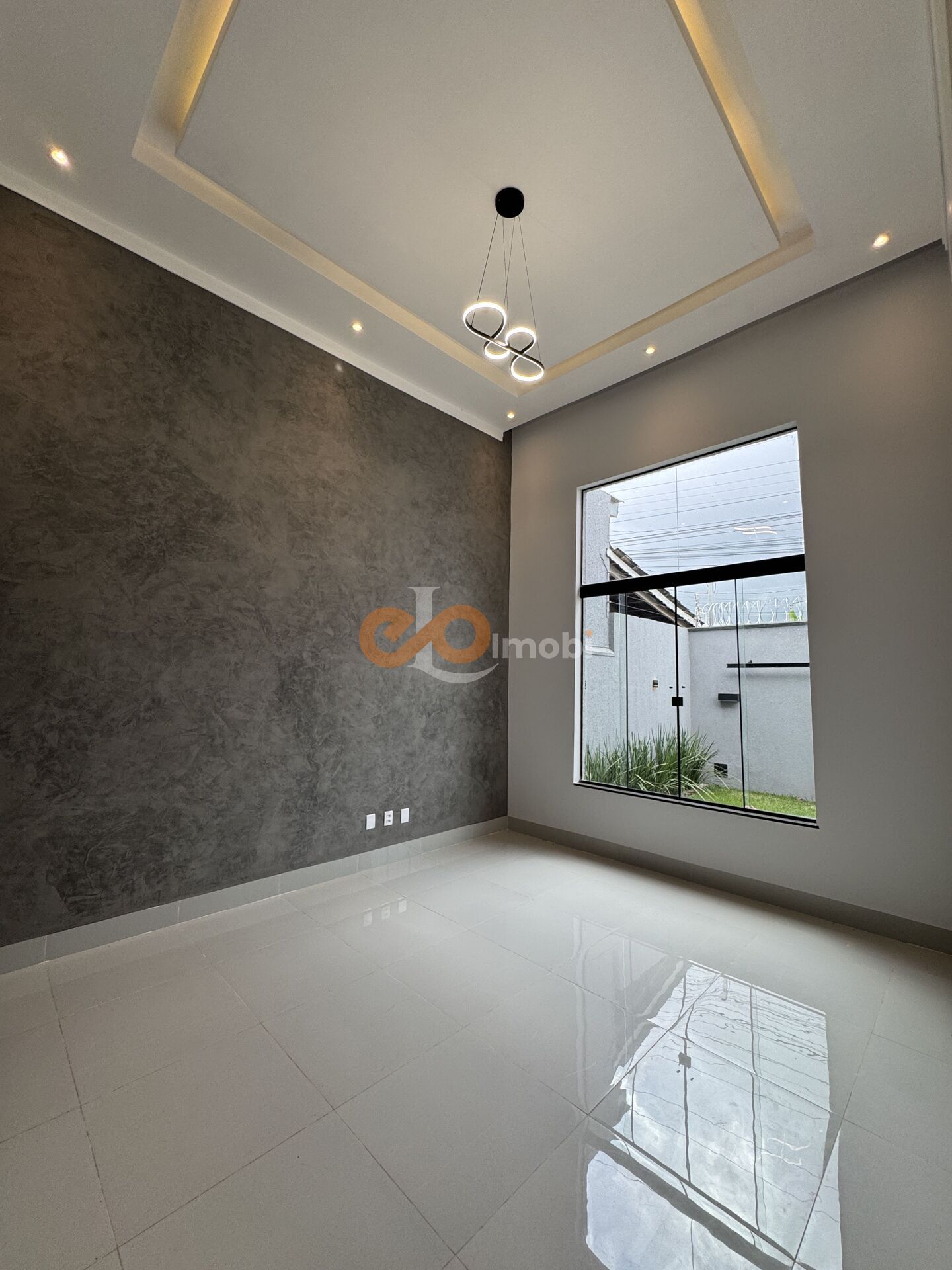 Sala de estar ampla com pé direito elevado rebaixamento em sanca